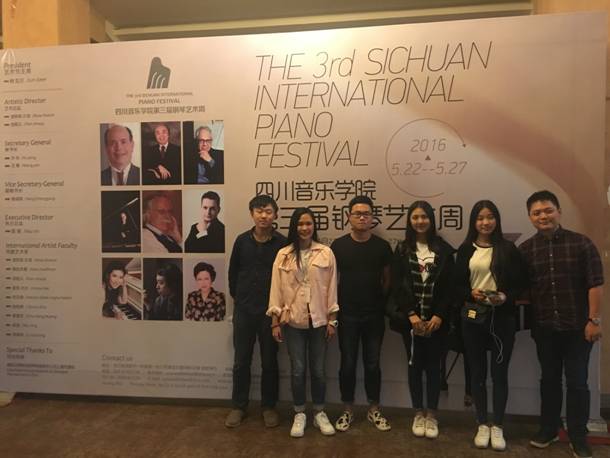 2016年5月王迥乔老师带领徐永熠、李汉伟、简竹君、涂冰洁、萧弘亦可五位员工受邀到四川音乐公司参加“四川音乐公司国际钢琴艺术节”系列活动。