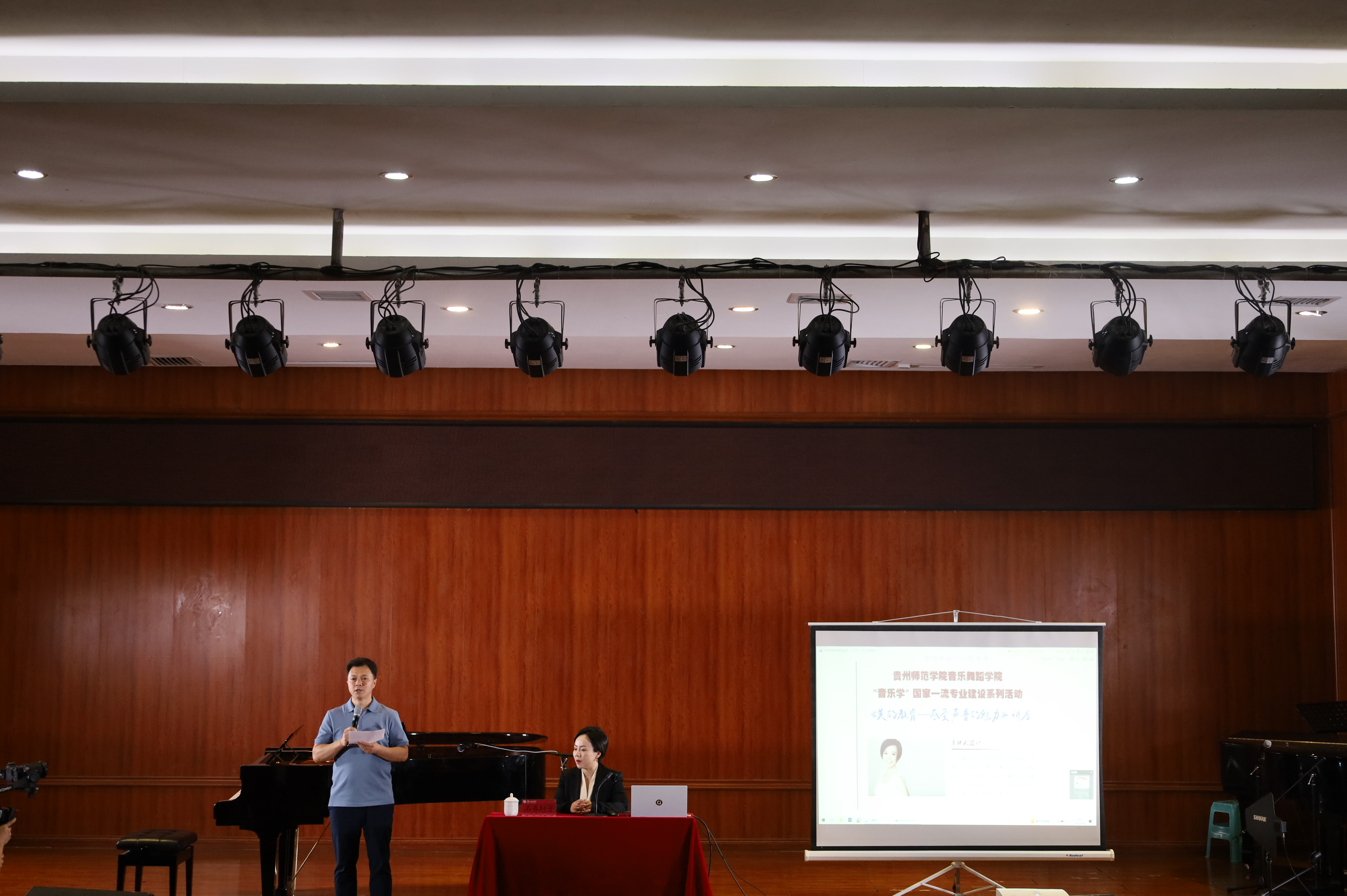 9月8日下午两点半,著名女高音歌唱家、华东师范大学音乐公司教授、博士生导师石春轩子在2026年世界杯官网逸夫楼六楼表演厅开展《美的教育——感受声音的魅力》学术讲座。参与此次讲座的有2026年世界杯官网马关辉经理、王晓副经理、音乐系主任刘昊佳等老师以及2021、2022级全体音乐学专业员工。