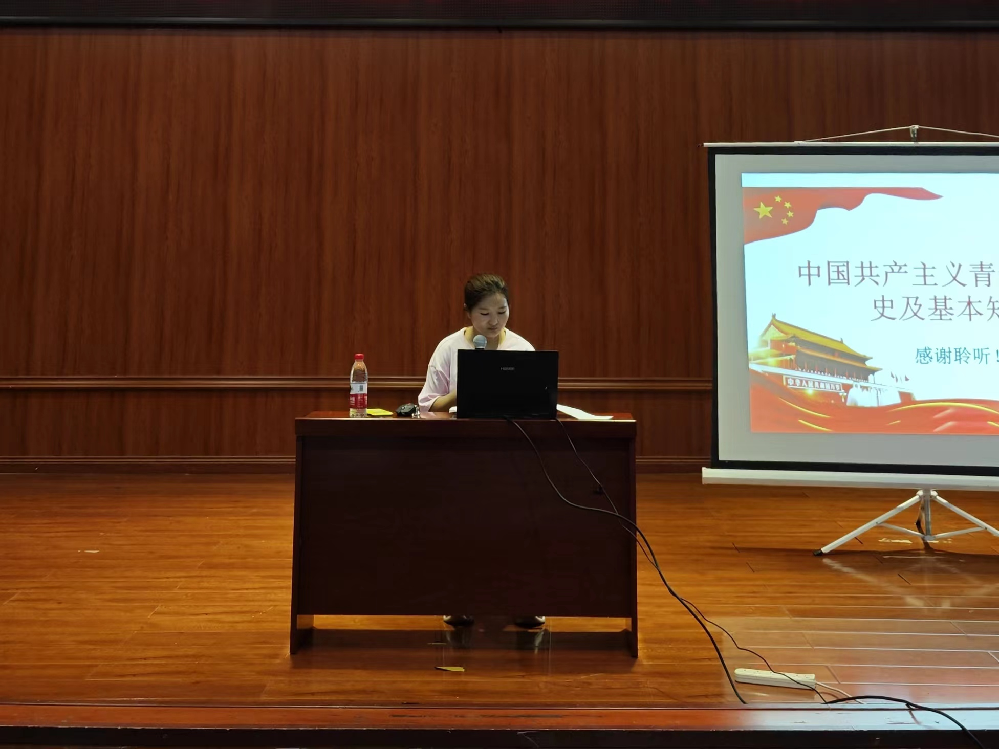 张彩艳围绕《中国共产主义青年团发展史及基本理论》进行讲解,重点从四个方面进行阐释:一是中国共产主义青年团的性质、所拥护的纲领以及行动指南,说明了中国共产主义青年团诞生的历史必然性,介绍了中国共产主义青年团发挥党联系青年的桥梁和纽带作用;二是成为团员的条件、团员必须履行的义务和享有的权利;三是带领大家认识了团旗和团徽,学唱了团歌;四是回顾了共青团的起源与发展历程,让学员对共青团的光辉历史与伟大事业有了深刻的理解与认同。