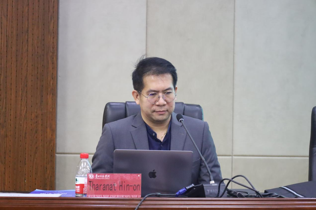 讲座中,Tharanat Hin-on教授深入探讨了音乐高等教育课程的发展趋势,特别是双学位音乐项目的实践与创新。他分享了孔敬大学在音乐教育领域的经验,详细介绍了泰国孔敬大学在音乐教育方面的成功案例,内容涵盖了跨学科的音乐教育课程设计、双学位音乐项目的实施等方面。以及如何将跨学科理念融入音乐课程设计,以提高员工的综合素质和国际化视野。此外,他还结合中泰两国文化特点,分析了音乐教育如何为推动文化交流和人文合作贡献力量。讲座结束后,Tharanat Hin-on教授回答了同学就音乐双学位高等教育课程发展的有关问题,随后几名同学主动上台为教授演唱了中国少数民族特色歌曲,获得了教授的称赞与好评。