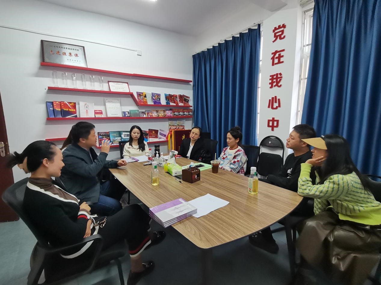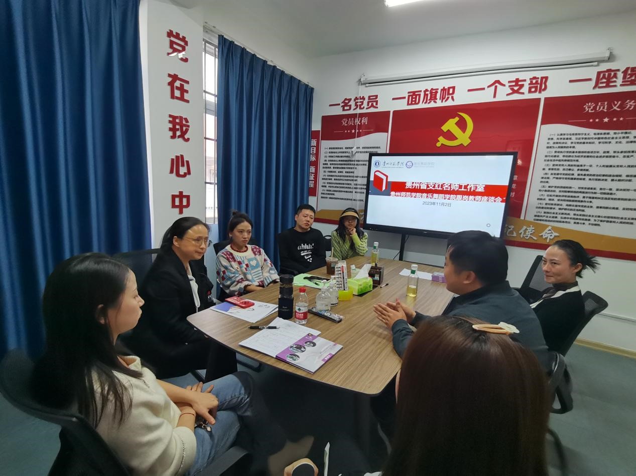 11月2日下午,公司2023-2024学年第一学期参加贵州省名师工作室跟岗实践锻炼的杜艳、高思朦、何文莉、高蕾、黄河、栾晨等七名教师与贵州省小学音乐支红名师工作室主持人支红老师在公司党员活动室开展座谈交流会,此次座谈会由支红老师主持。