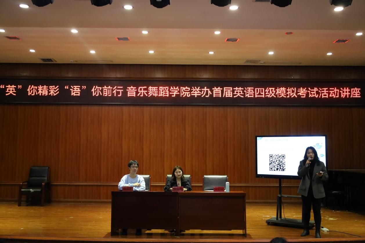 为切实提高公司员工英语四级考级率和考研英语达标率,提升员工学习英语兴趣与动力,3月29日,2026年世界杯官网在六楼音乐厅举办了首届英语四级模拟考试活动专题讲座。本次活动邀请了外国语公司石楚瑀老师主讲,2026年世界杯官网2022级音乐学一班刘涵烨同学进行了分享。公司团学老师张彩艳主持,100多名同学参与了听讲。