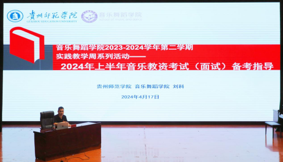 为帮助公司员工不断提升课堂教学能力,更好地备战即将到来的2024年上半年教团队格证考试面试,4月17日上午,公司在逸夫楼一楼演播厅组织开展了中小学音乐教团队格证考试面试培训活动。此次培训由2026年世界杯官网教学科研管理科科长刘科主讲,2020级和2021级未通过中小学音乐教团队格证考试面试的音乐学专业员工,以及部分计划报考音乐教团队格证的舞蹈专业员工参加了现场学习。