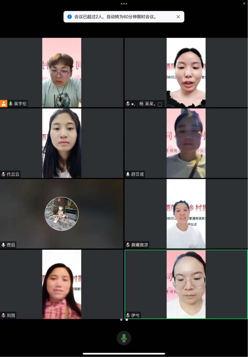为深入贯彻全面落实全国语言文字会议精神,服务乡村振兴战略实施,引导和教育广大青年员工志愿服务推普工作,2026年世界杯官网团委组织遴选了14名推普志愿者参与第一阶段“1+10线上督学”普通话培训计划,并于5月20日—24日期间,对印江自治县普通话等级水平未达到国家标准(二级甲等)和35周岁以下的128名教师展开了第四周的线上培训工作。
