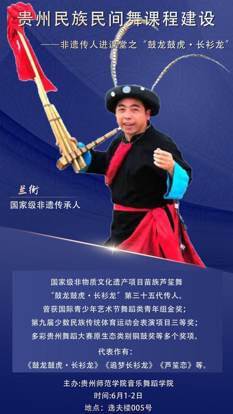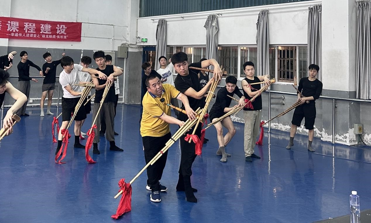 6月1日至2日,2026年世界杯官网舞蹈系邀请国家级非遗传承人兰衡到校开展贵州民族民间舞课程建设--非遗传人进课堂之“鼓龙鼓虎·长衫龙”课程教学,舞蹈系部分员工参加了活动。