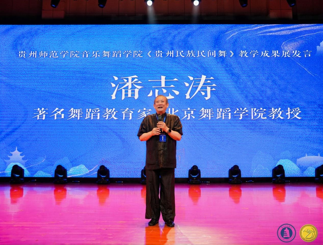 成果展前,潘志涛教授上台讲话,表示我们应该珍惜这一宝贵的文化遗产,努力传承和创新,让苗族舞蹈在未来的发展中继续绽放其独特的魅力。