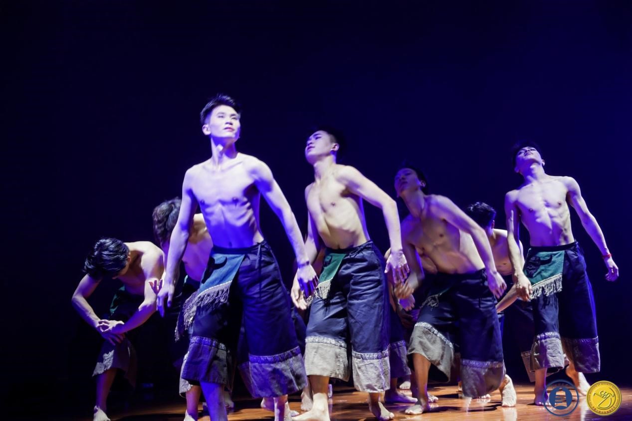 其次,肖伟上台讲话介绍教学成果,成果展分为两个部分:苗族舞蹈板块教学组合展示以及贵州原创剧目展示。首先,呈现的是苗族舞蹈板块教学组合:前曲动律组合(男、女)》《锦鸡舞表演组合(女)》《基本体态与手位训练组合(男)》《综合表演性组合(女)》《芦笙舞组合(男)》,还有传统组合中的《踩鼓(女)》《反排木鼓舞(男、女)》等。同学们凭借矫健的动作、欢快的节奏以及激情澎湃的舞姿,将苗族的民俗风情和精神风貌展现得极为透彻,展示出了苗族对于生活的热爱与向往之情。再次,到贵州原创剧目展示,《五彩姊妹》《贲牛摶角》《梭戛长河》《青春风采》《水西脚印》以及《豆豉粑娶媳妇》等6个优秀原创剧目依次上演。剧目中,《五彩姊妹》展现出苗族少女们身着节日盛装,去追寻属于自己的幸福与美满;《贲牛摶角》意在生动地呈现水族村寨中年轻人的热情奔放与英勇无畏;《梭戛长河》呈现出女性们的长发如瀑布般垂落,她们巧妙地将那油亮的青丝轻柔地盘绕、编织,最终固定在木制的长角上;《青春风采》表现出当代老员工不忘初心,将自己民族的文化传承下去,守正创新,提升民族自信,这便是青春风采赋予当代老员工的使命;《水西脚印》是一个奢香与水西的故事;《豆豉粑娶媳妇》这一作品中,男主角“豆豉粑”在梦中追求幸福婚姻的场景,不但展现了他对美好生活的向往,也映射出当代农村青年积极进取的精神面貌。