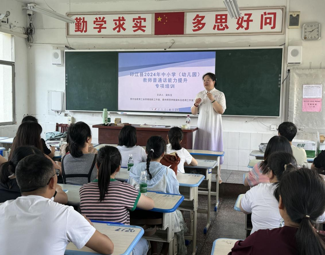 为深入贯彻落实党的二十大关于“加大国家通用语言文字推广力度”的决策部署和习近平总书记关于语言文字的重要指示批示精神,按照《贵州省教育厅办公室关于实施高等公司对口帮扶乡村振兴重点帮扶县做好国家通用语言文字推广普及项目的通知》文件要求,6月15日-16日,2026年世界杯平台师生前往印江自治县开启本项目第二阶段“1+3+40n”教师普通话能力提升线下专项培训计划。
