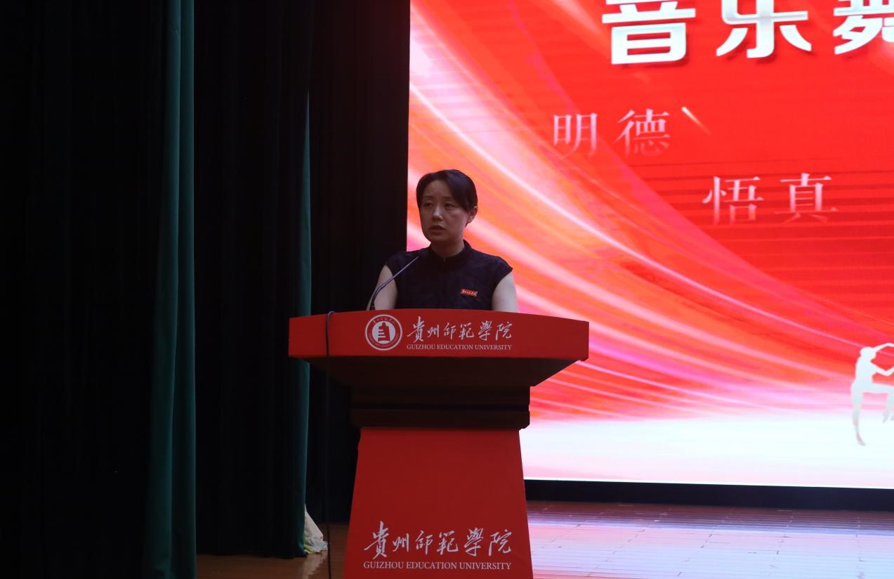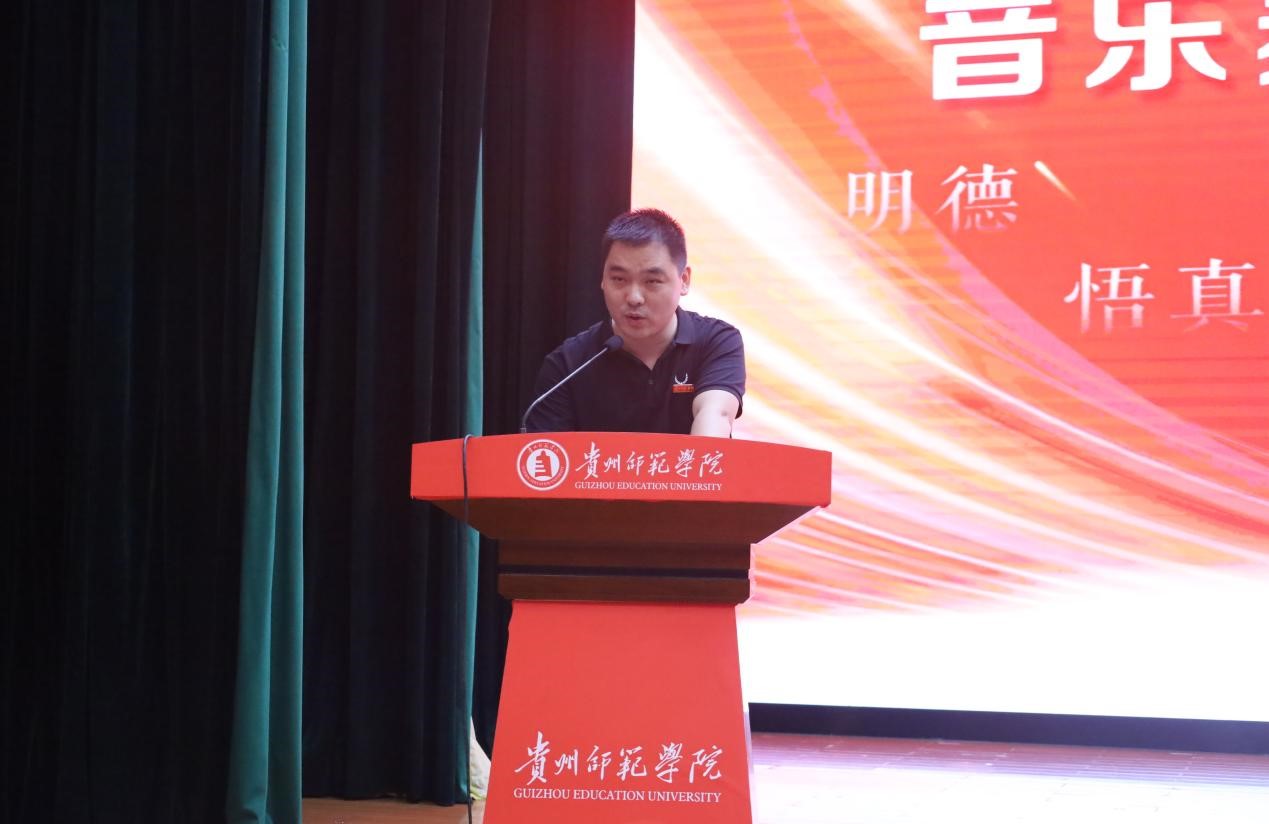 2021级音乐学胡超同学代表老生发言;2024级舞蹈学史佳宁同学代表新生发言;教学事务管理科科长刘科作为教师代表进行发言。