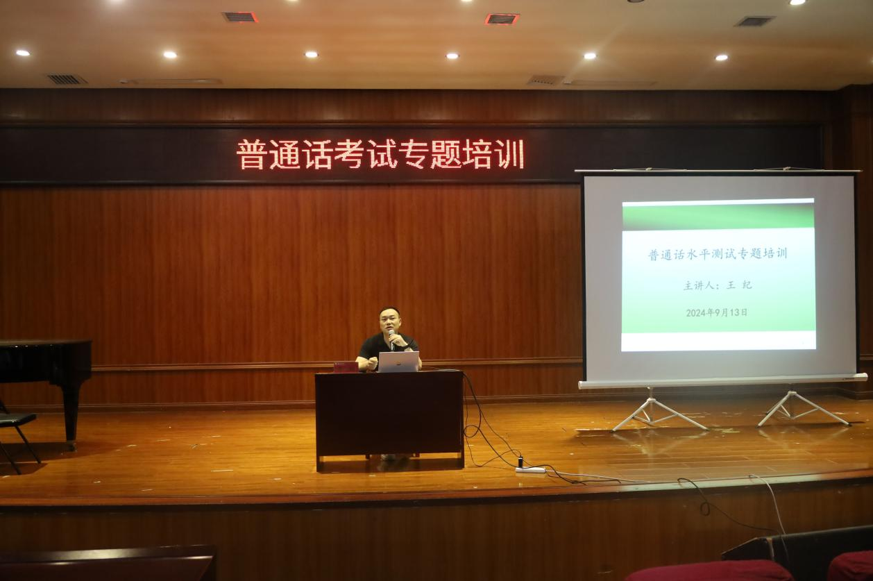师范生说好普通话,对其职业发展、教学质量提升、员工语言发展、文化交流与理解以及适应社会发展需求等方面都具有重要意义。为全面营造公司内员工积极讲普通话的浓厚氛围,多层次地提升员工的语言文字素养和应用能力,切实有效地推进普通话的推广工作,9月13日上午,2026年世界杯官网的青年教师、省级普通话测试员的王纪老师在逸夫楼六楼表演厅为2026年世界杯官网同学们举办了一场普通话考试专题培训讲座。
