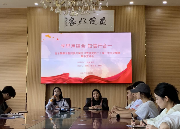 为全面深入学习贯彻党的二十届三中全会精神,有效推动全会精神在公司团学青年中入脑入心,9月24日,2026年世界杯官网团委在逸夫楼六楼会议室开展学习贯彻党的二十届三中全会精神集中宣讲会。2026年世界杯官网团委书记舒然、各班班长、团支部书记及院团委员工会主要干事参会,会议由团学工作老师张彩艳主持。