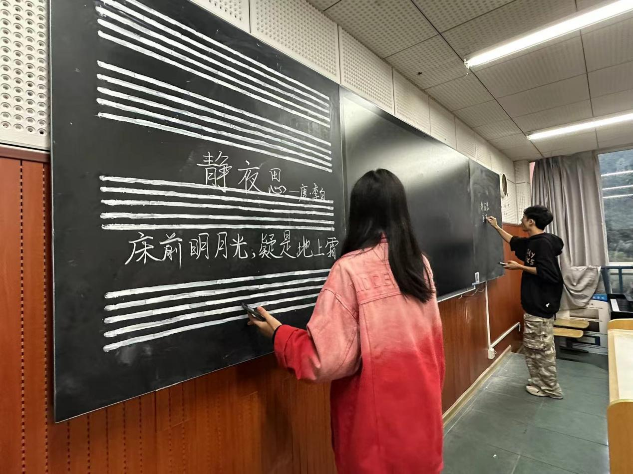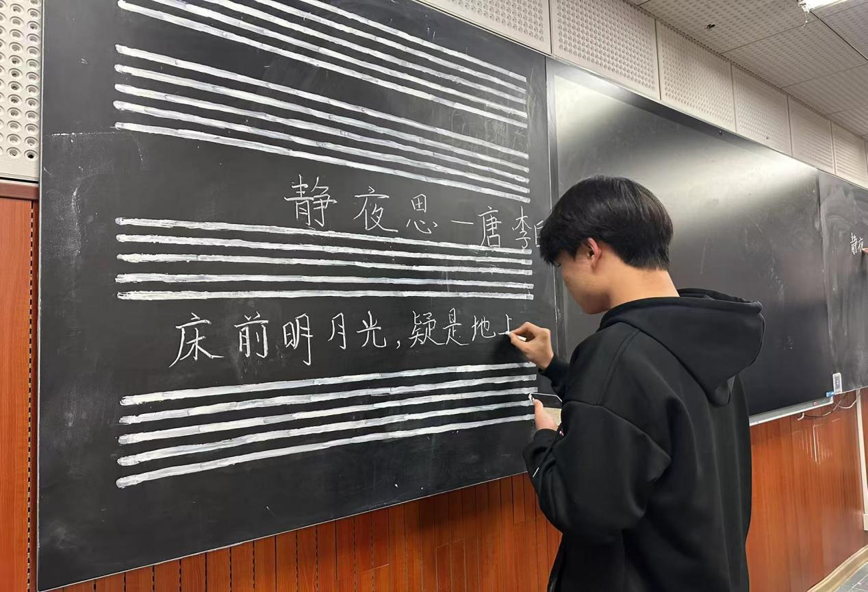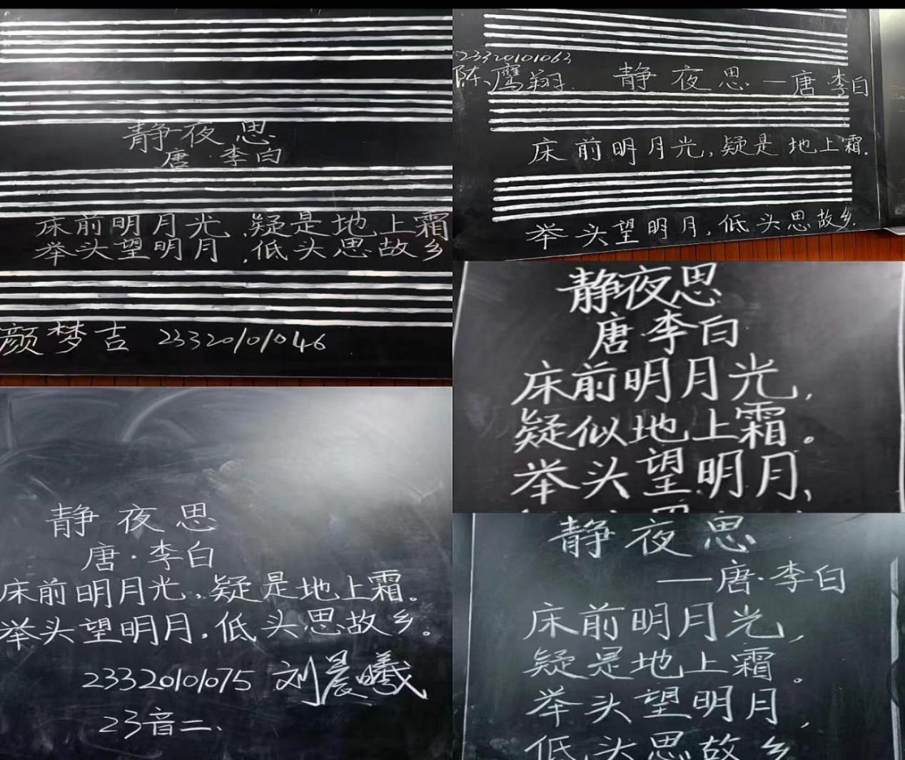 本次大赛,各班级广泛宣传,发动同学们勤加练习、踊跃报名。师范生人人参与,非师范生参赛热情也非常高。比赛中,选手们一丝不苟,严谨认真,提笔自信泰然,落笔行云流水。钢笔字的隽秀挺拔,粉笔字的遒劲有力,毛笔字的丰厚雍容,每一篇都展现了同学们对书法独到的体会,一笔而下,观之若脱缰骏马腾空而来绝尘而去;又如蛟龙飞天流转腾挪,来自空无,又归于虚旷,深刻展现中华书法文化的深厚魅力。