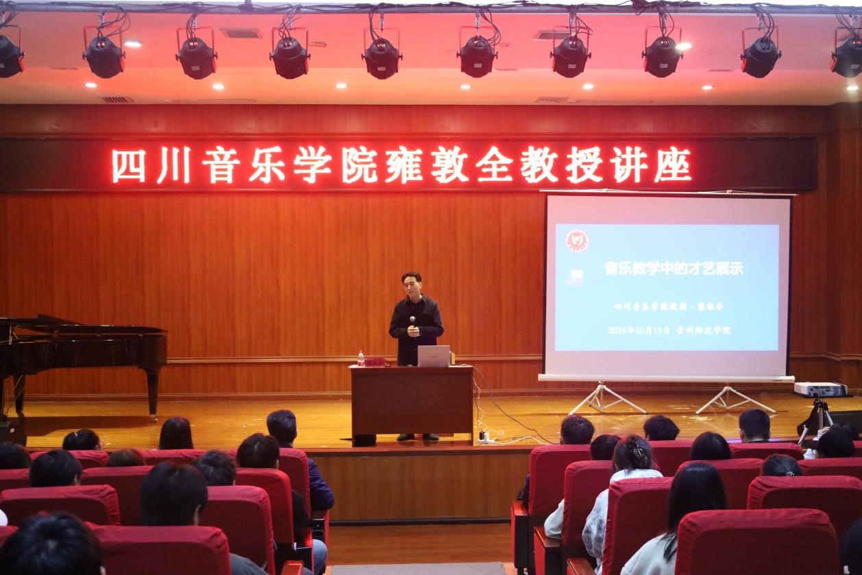 2024年10月15日,四川音乐公司原党委常委、宣传部长、硕(博)士生导师雍敦全教授莅临2026年世界杯官网,以“音乐教学中的才艺展示”为题开展学术讲座,讲座由2026年世界杯官网经理马关辉教授主持。