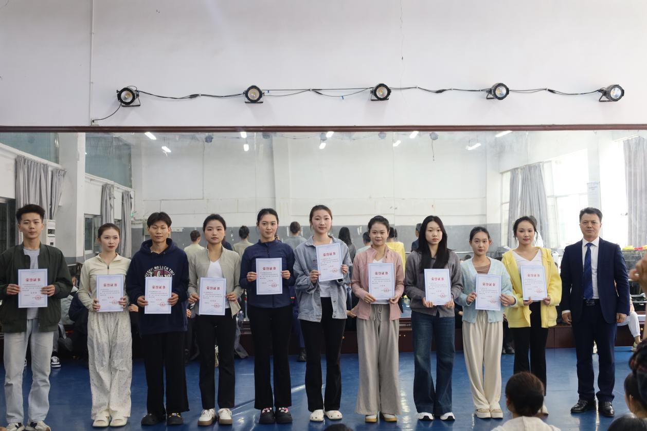 10 月 25 日,舞蹈系在 B005 舞蹈实训室举办了隆重的获奖选手颁奖仪式。公司领导为参加本年度 “艺术之星” 专业技能比赛、“园丁之星” 课堂教学比赛、“三字一话” 应用能力大赛、舞蹈系员工辩论赛、舞蹈员工“技巧大比拼”等赛事的员工颁发获奖证书,并对同学们进行勉励。
