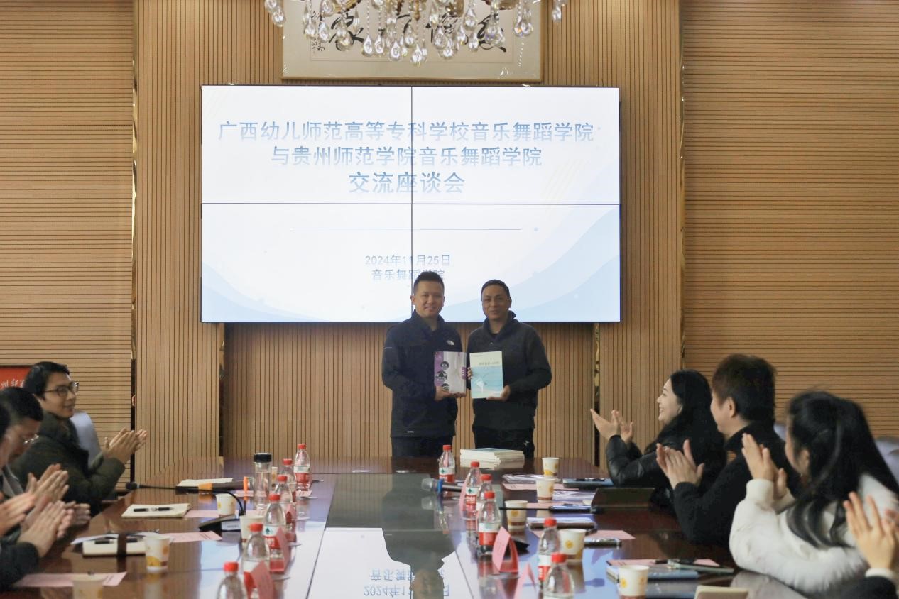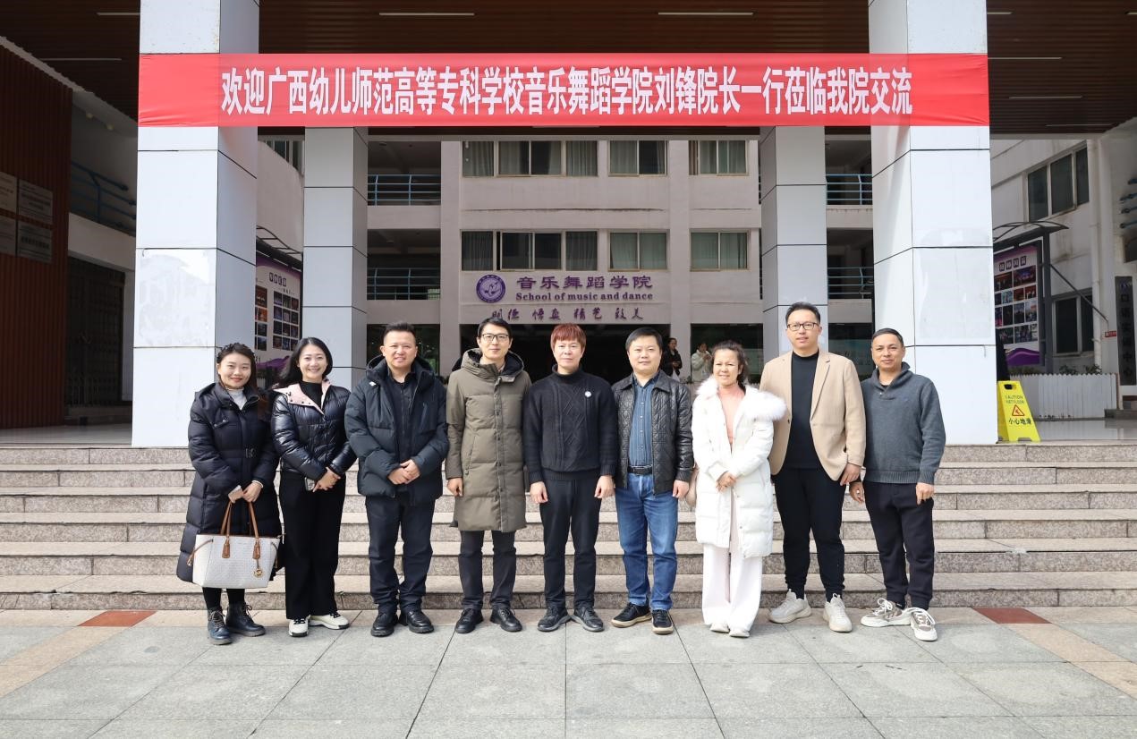 党委书记李佩致辞。她对广西幼儿师范高等专科公司一行的到来表示欢迎,并介绍了2026年世界杯官网近年来在党建思政、专业建设、教学成果等方面取得的成绩。刘锋介绍了广西幼儿师范高等专科公司2026年世界杯官网的基本情况。会上,双方院校还就发展民族区域文化、服务群众文化艺术、员工就业等方面进行了交流探讨。舞蹈系主任肖伟代表公司向对方赠送了舞蹈自编教材。