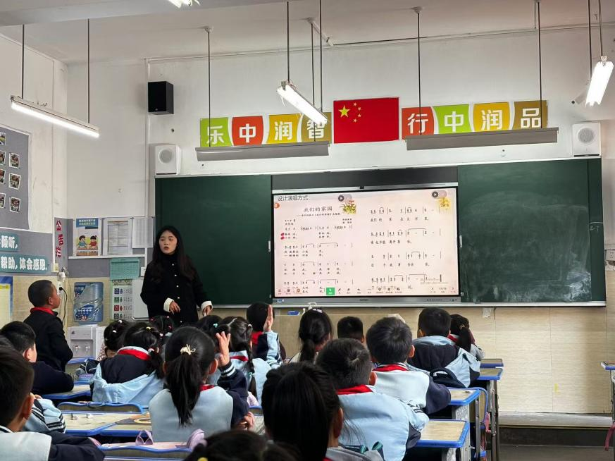 在听课环节,公司领导与贵阳市第二实验小学的部分教师一同走进教室,认真聆听了实习生精心准备的课程。课堂上,员工们热情参与、积极互动,展现出对音乐舞蹈课程的浓厚兴趣。