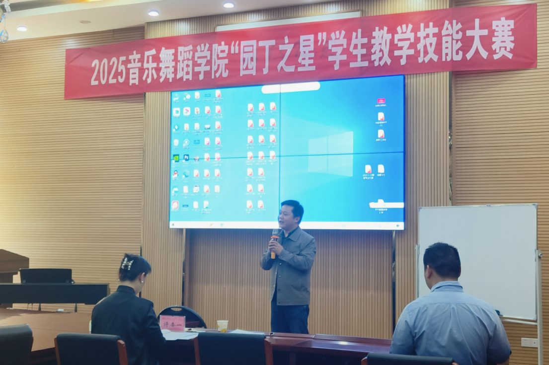 音乐组的决赛于16日下午在公司六楼会议室隆重举行,2022、2023级音乐学专业共18名同学参加了比赛。为保证比赛成绩公平、公正、专业,公司邀请了来自乌当区教育科研与教师培训中心、乌当区第四中学等优秀一线音乐教师和教研员担任比赛评委。比赛正式开始前,公司副经理王晓来到赛场热情致辞,对进入“园丁之星”决赛的同学表示祝贺,对在百忙之中前来公司担任评委工作的一线老师们表示感谢。他强调了课堂教学技能对于音乐师范生专业能力发展的重要性,希望参加比赛的同学们在“园丁之星”的舞台上尽情展示自己的才华,不断提升教学能力。