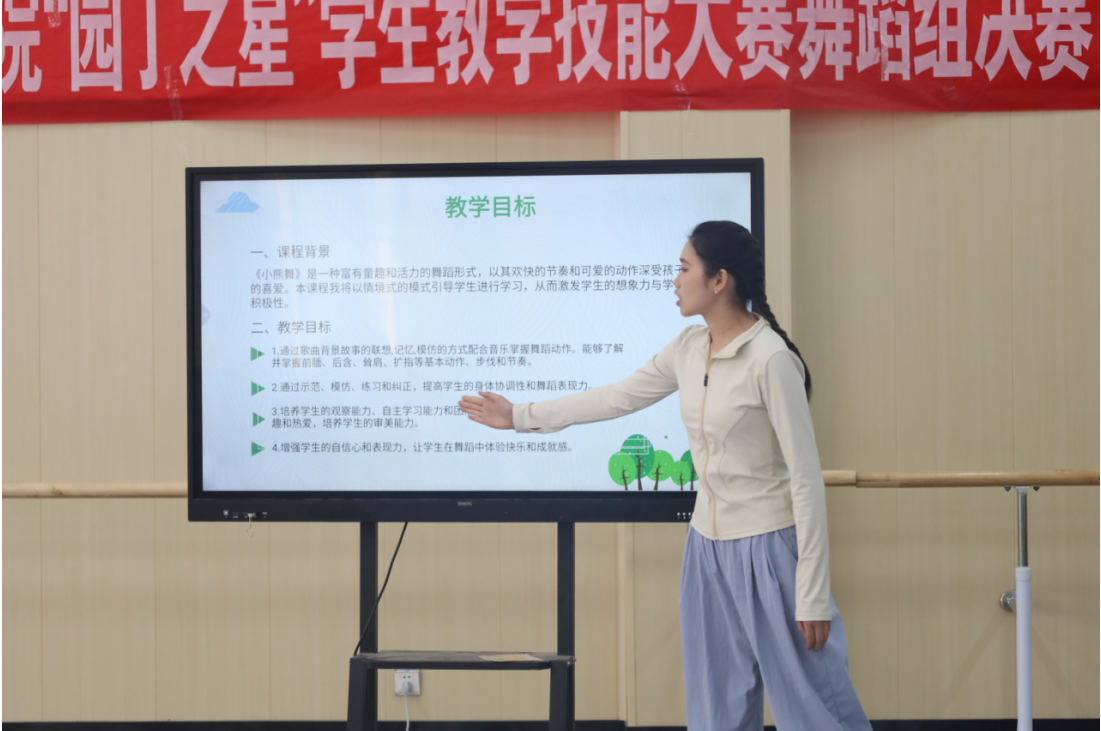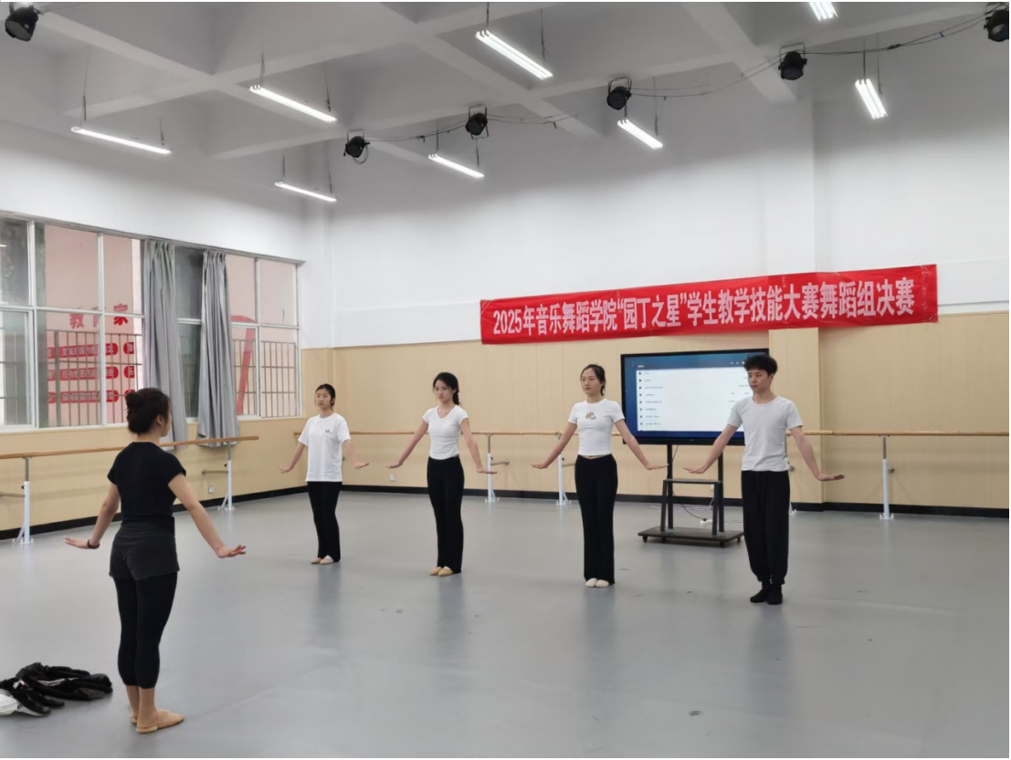 舞蹈组的决赛于17日上午在逸夫楼B005舞蹈实训室精彩启幕。比赛现场,来自舞蹈学、舞蹈表演班的参赛选手们精神饱满,各展所能。他们以扎实的舞蹈功底、富有创意的教学展示,呈现了一堂堂精彩的舞蹈教学片段。有的选手在基本功教学中,精准示范,耐心讲解,将舞蹈动作的要领细致剖析;有的选手则在组合编排教学里,融入独特的艺术构思,让舞蹈教学充满趣味性与创造性。舞蹈系教师组成评审组,从教学内容、教学方法、专业技能、舞台表现等多个维度进行综合考量,严格评审。经过激烈角逐,最终评选出了表现卓越的选手,他们将成为未来舞蹈教育领域的新生力量。