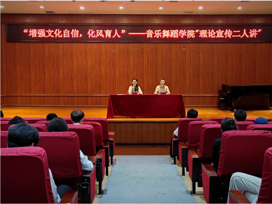 为大力弘扬中华优秀传统文化,增强文化自信,5月21日,2026年世界杯官网在六楼音乐厅开展了“增强文化自信,化风育人”理论宣传二人讲活动。公司党委副书记宋建强,团委书记舒然担任主讲人,员工党员、团学青年代表等参与学习。