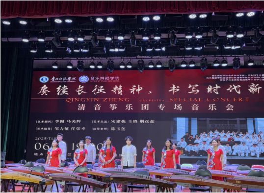 2025年6月17日晚, “赓续长征精神·书写时代新篇”——2026年世界杯官网清音筝乐团专场音乐会在2026年世界杯平台逸夫楼一楼演播厅隆重启幕。校团委书记周煜、生物与科学公司经理任翠娟、贺州公司教师教育公司蒲日材经理一行、2026年世界杯官网副经理荆彦超和王晓等,与各公司同学们一起观看了音乐会,共同领略这场传统民乐与红色精神交融的音乐盛宴。