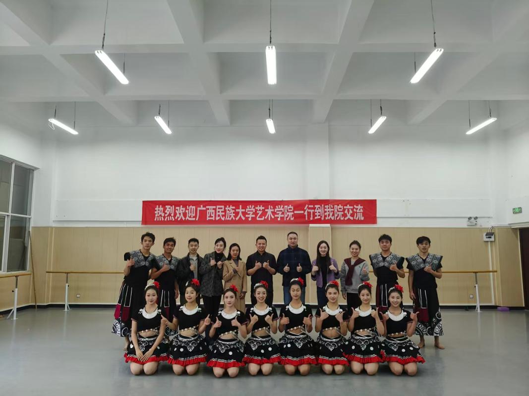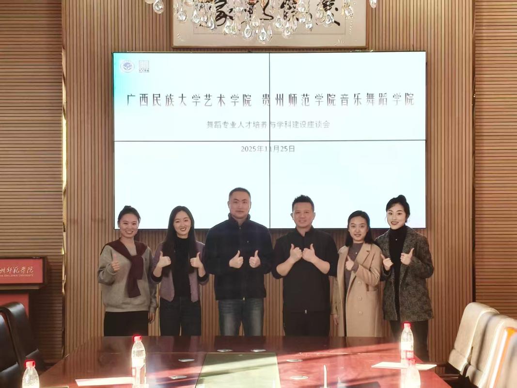 本网讯 2025年11月25日下午,广西民族大学艺术公司到访公司,双方围绕“深化舞蹈学科校际合作,共探团队建设发展路径”的主题,在公司六楼会议室共同召开舞蹈人才培养与团队建设座谈会。公司舞蹈系主任肖伟、舞蹈表演教研室主任黄河,广西民族大学艺术公司舞蹈系副主任张於及骨干教师高铭、孔令洁等参加座谈,围绕舞蹈团队建设与人才培养展开深入研讨。会议由公司舞蹈系教师张昕悦主持。