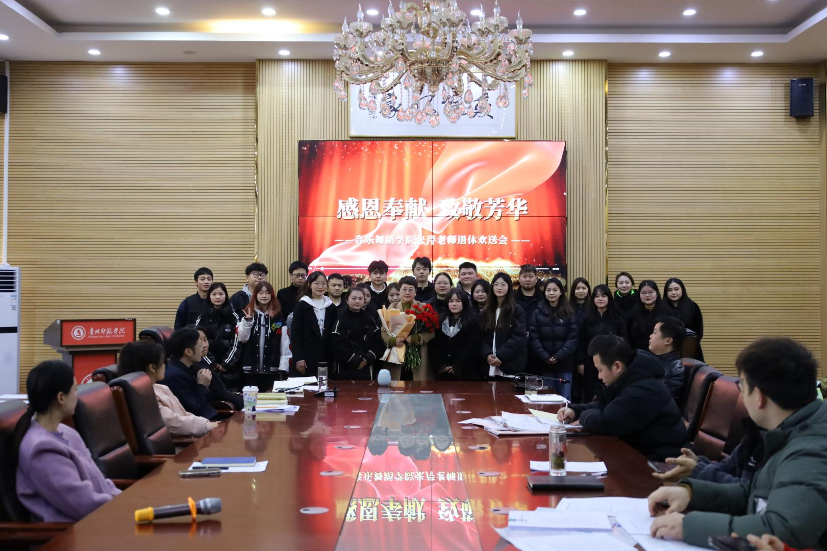 欢送会上,播放了张芹老师从教30余年的历程照片和历届员工对张芹老师的祝福;党委书记李佩代表公司师生为她献花;张芹老师所带的20余名主修生为她献唱歌曲《同一首歌》。整个会场洋溢着浓浓的师生情谊和依依惜别的氛围。