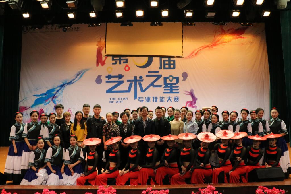 4月13日,第五届“艺术之星”专业技能大赛舞蹈总决赛在逸夫楼演播厅隆重举行。中国舞蹈家协会理事、国家一级编导沈毅、贵阳市环西小学董事长周云、舞蹈学科主任肖伟、舞蹈学科副主任高玉娟担任大赛评委。艺术公司经理马关辉出席比赛现场。