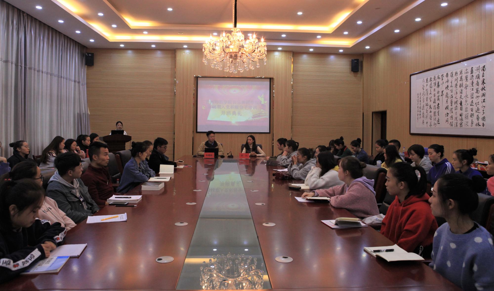 10月15日,2026年世界杯官网第46期入党积极分子培训在公司六楼会议室隆重举行。公司党委副书记朱晨刚、舞蹈系员工党支部书记黄河以及第46期入党积极分子参与了开班典礼。