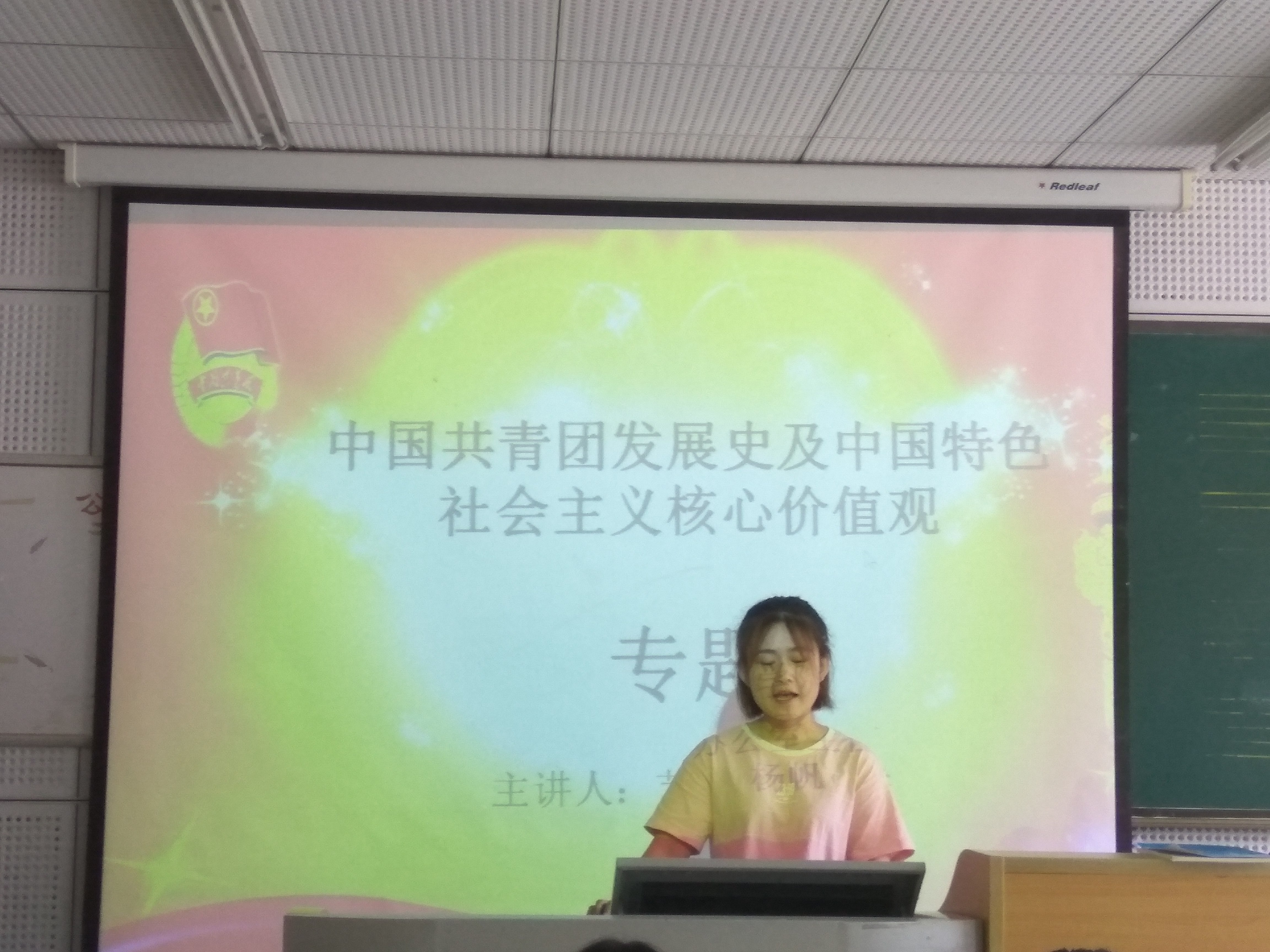 会议开始,杨帆首先给大家简述了作为中国共产主义青年团发展的历史。重点给学员们详解讲解了团的章程、发展历史、基本原则及指导思想。会议最后,杨帆通过观看视频的方式,让新团员直观地了解中国特色社会主义核心价值观。