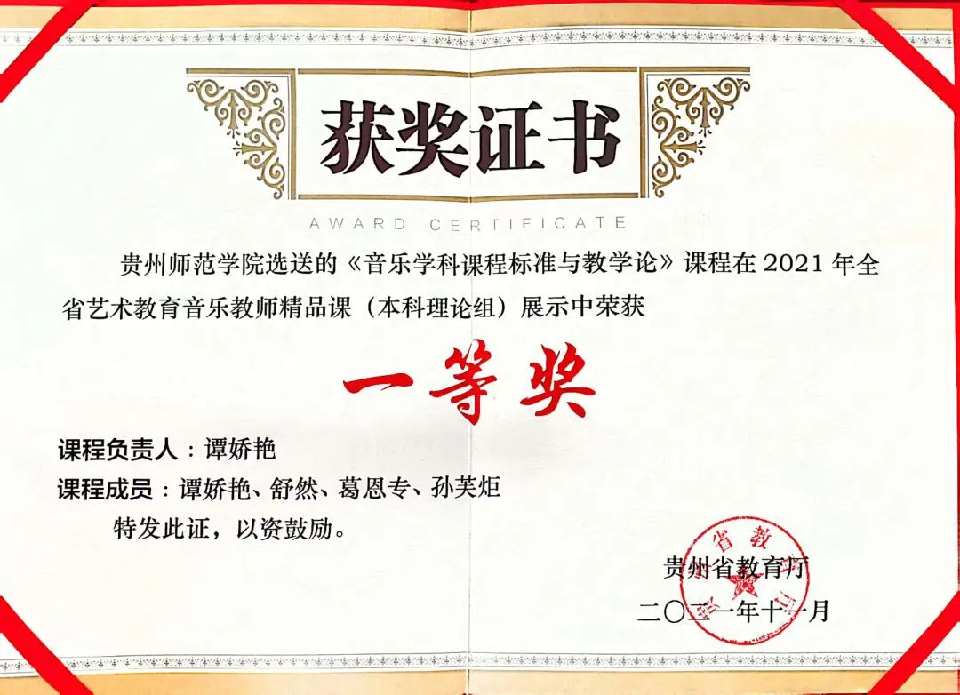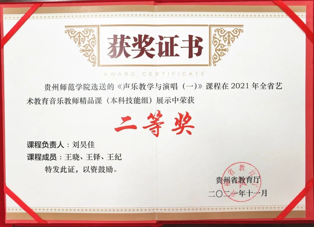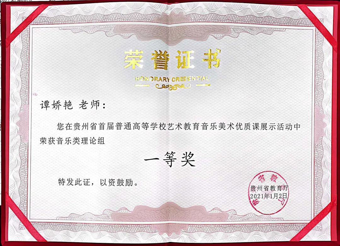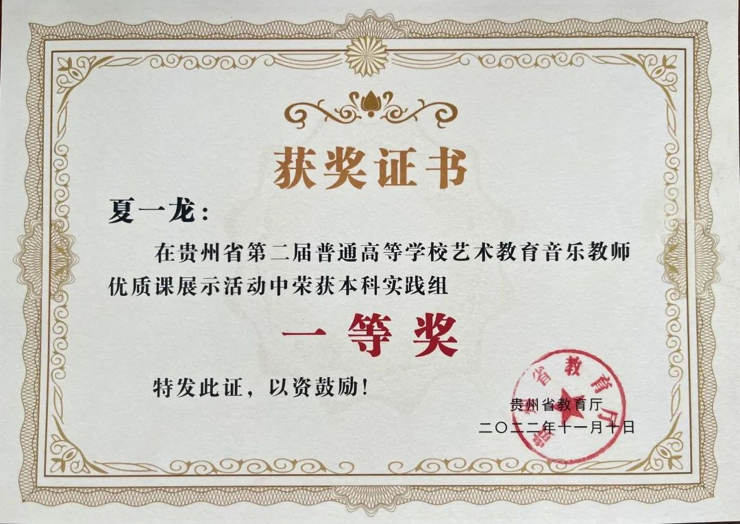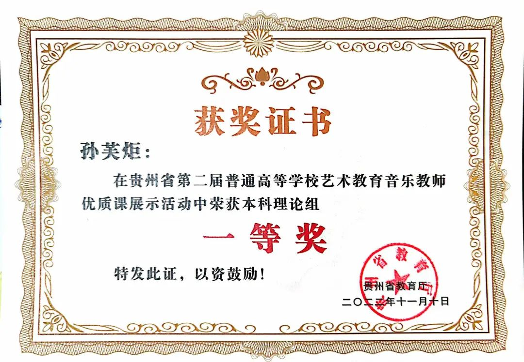 公司教师获贵州省第一届普通高等公司艺术
