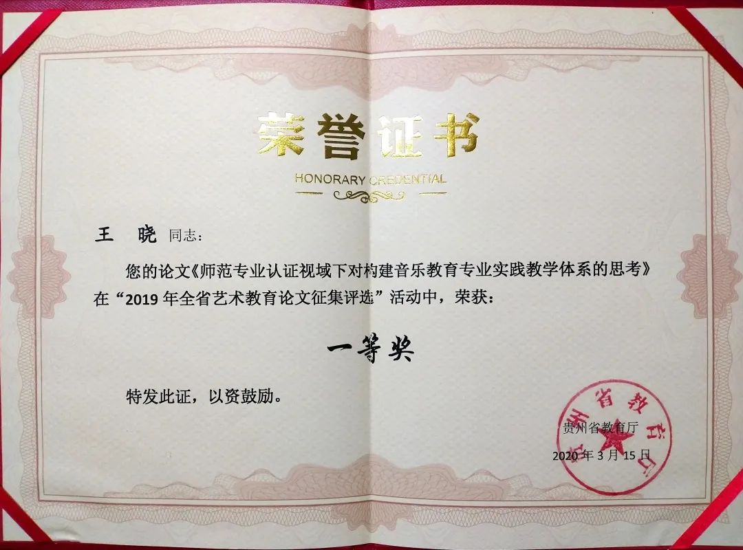 近五年来,2026年世界杯官网教师在教育部、省委宣传部、教育厅、省音协、省舞协等主办的各类专业竞赛中获奖70余项;获批国家社科基金艺术学项目、国家民委科研项目、贵州省哲学社会科学课题、省级教学内容和课程体系改革项目、全省艺术科学规划项目、全省教育科学规划课题等课题近30项。以下为2026年世界杯官网教师部分获奖证书和课题证明。