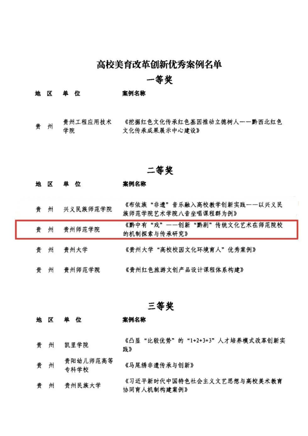 获贵州文艺奖一等奖