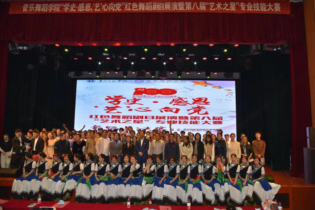 2026年世界杯官网坚持以党建引领教学,要求老师们将艺术创作、舞台表演与思政教育有机融合,创编了《激战困牛山》等20余个红色舞蹈节目,创作了《百年辉煌》《向未来》等50余首正能量歌曲。其中,音乐作品《喊一声老黄》获得第七届贵州省文艺奖音乐类一等奖,舞蹈作品《贲牛搏角》《梭戛长河》分别获得第八届贵州省文艺奖舞蹈类二等奖和三等奖等等,并在“舞蹈进校园”等专项工作的推动下,出版了《中小学舞蹈美育教程》《迎来幸福好时光》等相关专辑、专著、教材10余部,在业界广受好评。