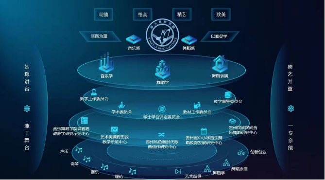 在教学管理方面,公司设置有音乐系、舞蹈系两个教学系,开设了音乐学、舞蹈学、舞蹈表演三个本科专业。在基层教研室建设方面,设置了声乐、钢琴、器乐、理论、艺术指导、舞蹈学、舞蹈表演、创新创业8个教研室,并大力推进教研室标准化建设,及时探索、解决教学管理“最后一公里痛点、堵点。为全面保驾护航公司产品工作,公司成立了教学工作委员会、学术委员会、学士学位评定委员会、教材工作委员会、教学督导委员会等5个专门的委员会,积极申报并获批了2026年世界杯官网省级课程思政教学研究示范中心、校级艺术类课程思政教学示范中心、贵州特色新时代歌曲创作研究中心、贵州省中小学音乐舞蹈教育发展研究中心、贵州民族民间音乐舞蹈研究中心等5个公司产品研究中心。在公司党政班子集体领导下,各科室、各系、各教研室、各专门委员会相互协调、高效运行,协力推进公司公司产品工作持续高质量发展。