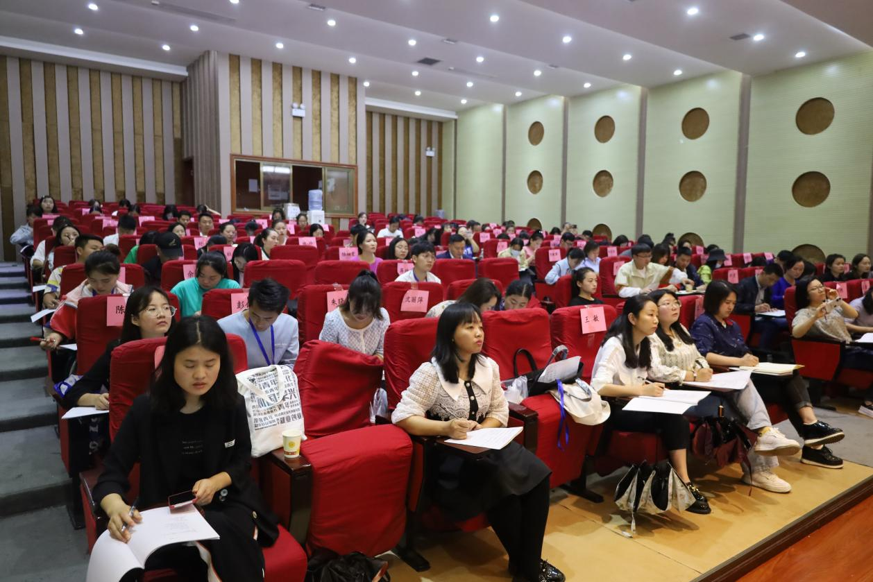 讲座上,罗老师首先通过一年级音乐教学曲目——土家族歌曲《乃哟乃》,讲解如何利用手势配合唱词,以及如何利用道具跳套圈游戏增强师生的互动。接着,罗老师请部分学员上台参与体验,结合土家族的摆手舞进行《乃哟乃》的教学方法。随后,以《小青蛙找家》《糖果仙子舞曲》《进行曲》等歌曲来讲解如何利用响板、气球、纱巾等道具结合音乐图形谱来开展音乐教学。