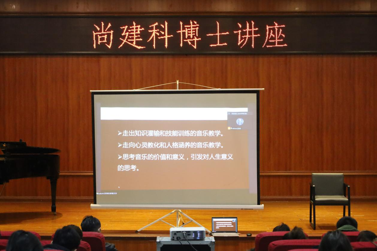 2021年12月4日上午,“国培计划(2021)”五育并举融合育人培训项目(小学音乐)在音乐舞蹈系公司演播厅举办了《音乐教学法的理论与实践》线上主题讲座,本次讲座由陕西师范大学副教授、尚建科博士主讲。