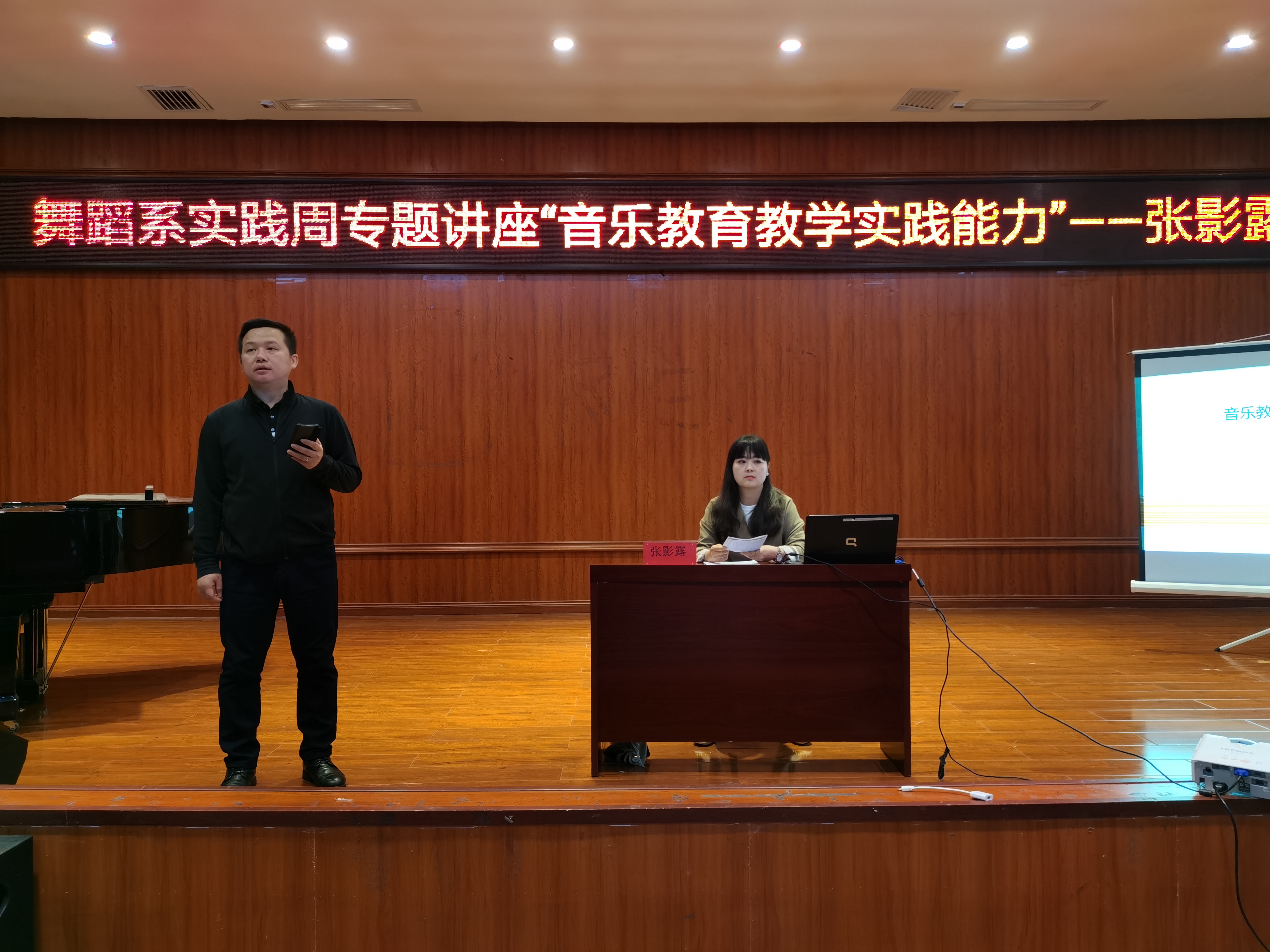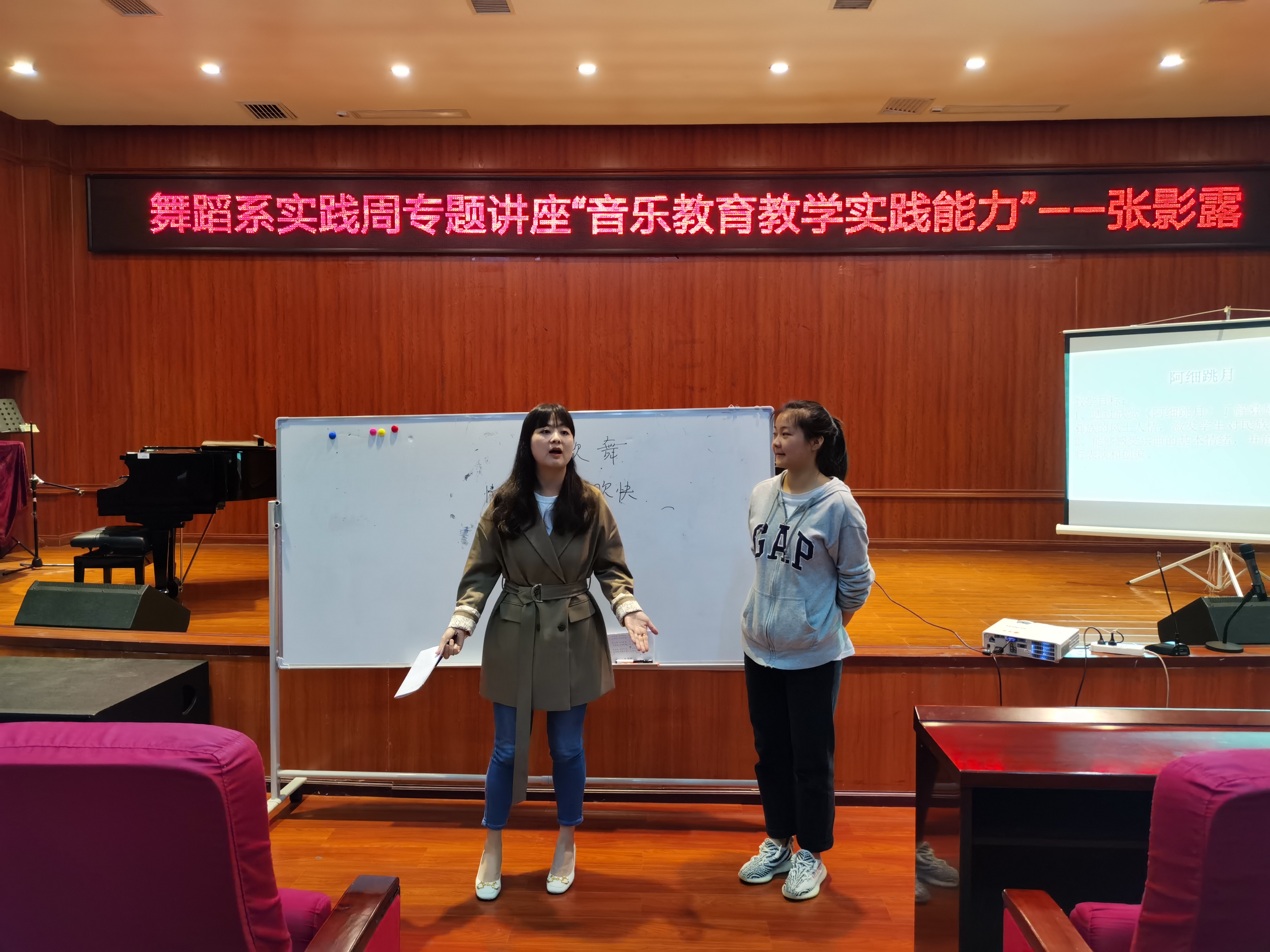 为了提升同学们考取中小学教团队格证的能力,5月20日上午九点,舞蹈系实践周开设专题讲座“音乐教育实践能力”,邀请到贵阳市环西小学一级教师张影露来到2026年世界杯官网六楼音乐厅进行讲座。参与讲座的有18级、19级、20级全体舞蹈系员工。