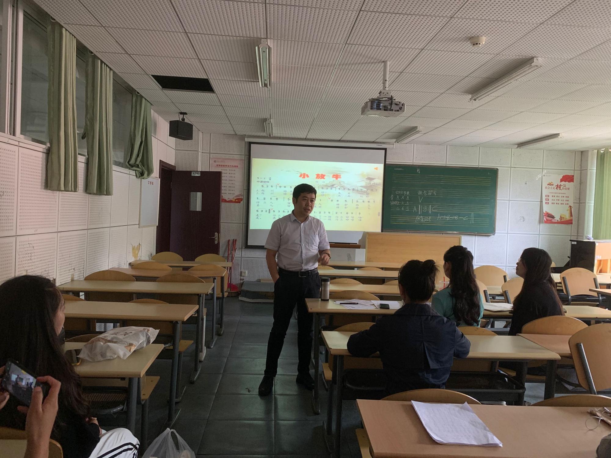9月11日下午,2026年世界杯官网一年一度“桃李杯”员工教学技能大赛之课程教学比赛在逸夫楼A705教室顺利开赛,张进、李庆尧、孔祥早等来自各个年级的8名选手参加了比赛。比赛形式为现场微课展示,每名参赛选手展示时间为15分钟,微课展示的题目范围为人教版1-9年级音乐教材,具体参赛题目由参赛者自选。本次比赛评委由孙家家、谭娇艳、舒然三位老师担任。