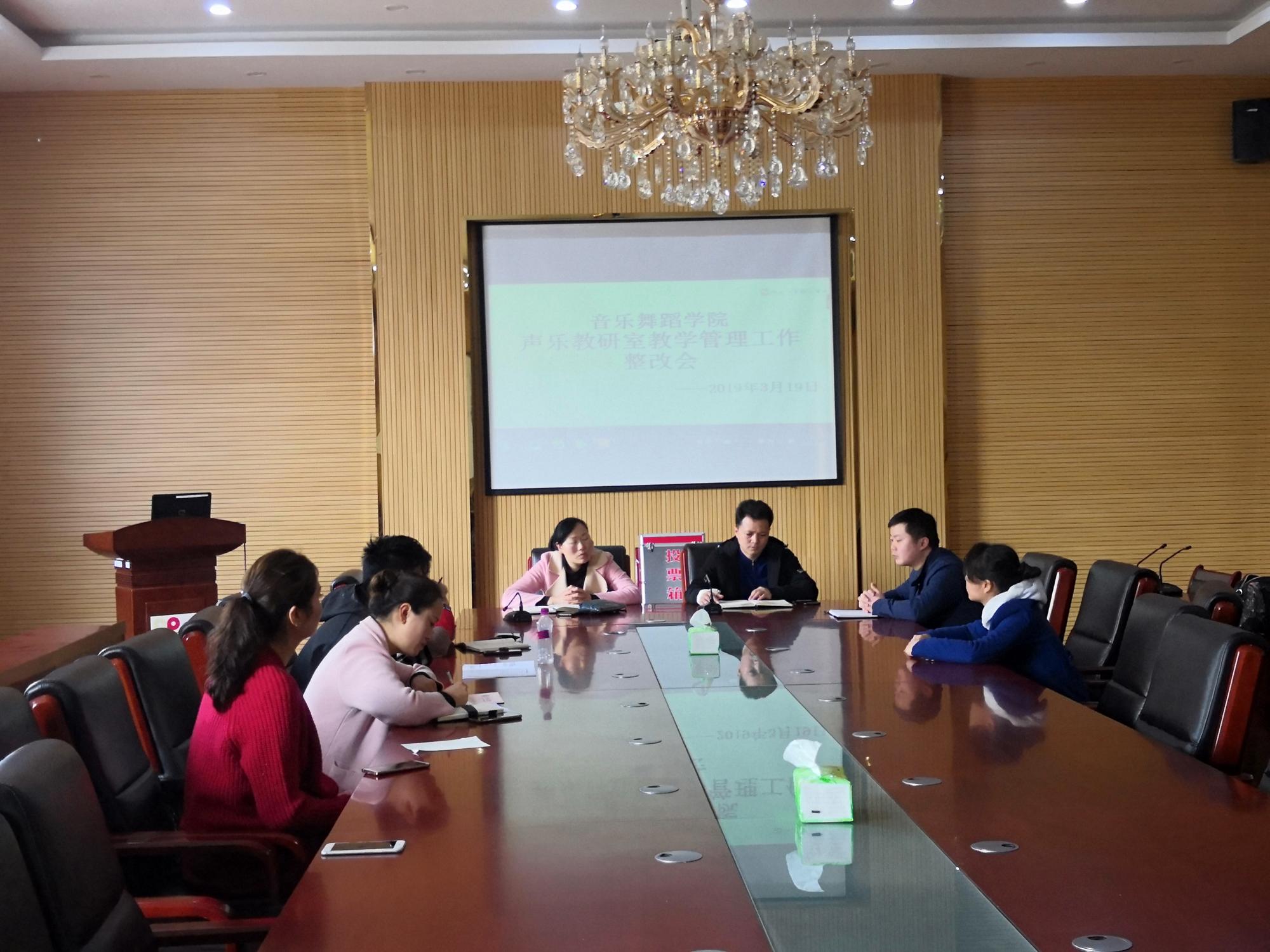 为进一步加强公司教研室建设,切实发挥教研室在教学、科研、管理等工作中的作用,3月19日下午1点,2026年世界杯官网在公司会议室召开声乐教研室教学管理工作整改会。公司党委书记付巧、经理马关辉莅临现场,对声乐教研室建设进行了指导。此次会议由音乐系主任王晓主持,声乐教研室全体教师参加了会议。