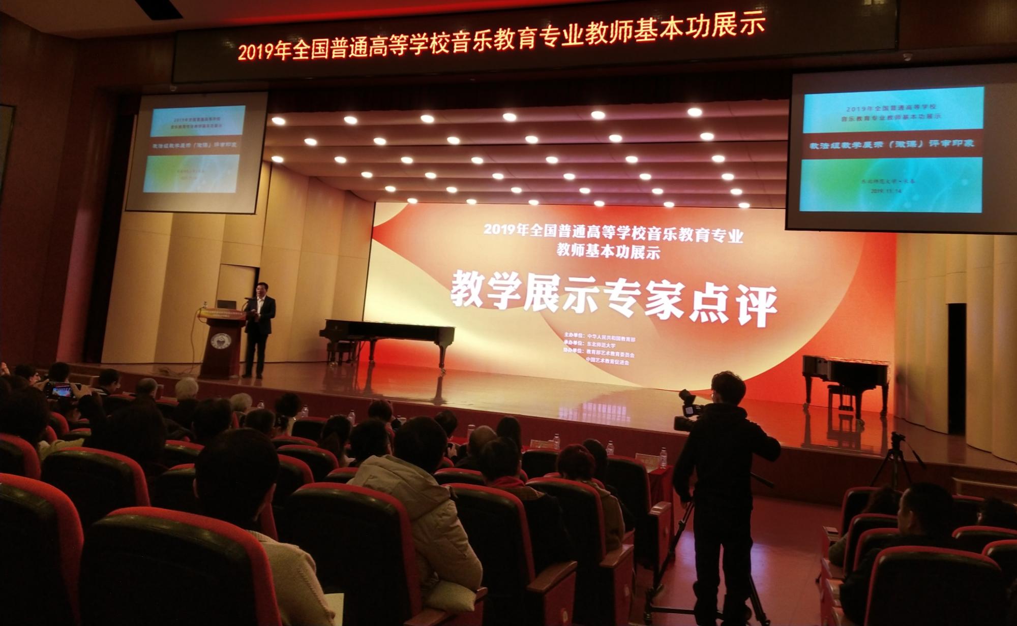 11月11日-15日,由教育部主办的2019年全国普通高等公司音乐教育专业教师基本功展示在音乐东北师范大学举行,来自全国30个省(市、区)和新疆生产建设兵团69所高校共175位教师参加展示。本活动是教育部在总结十届音乐教育专业本科员工基本功展示成功经验的基础上推出的一项创新活动,每两年举办一届。公司派出三名教师参加,在展示活动中,公司教师表现出了良好的精神风貌和全面的综合素质。经过三轮激烈角逐,王铎老师获得教法组个人全能三等奖和专业展示单项奖。