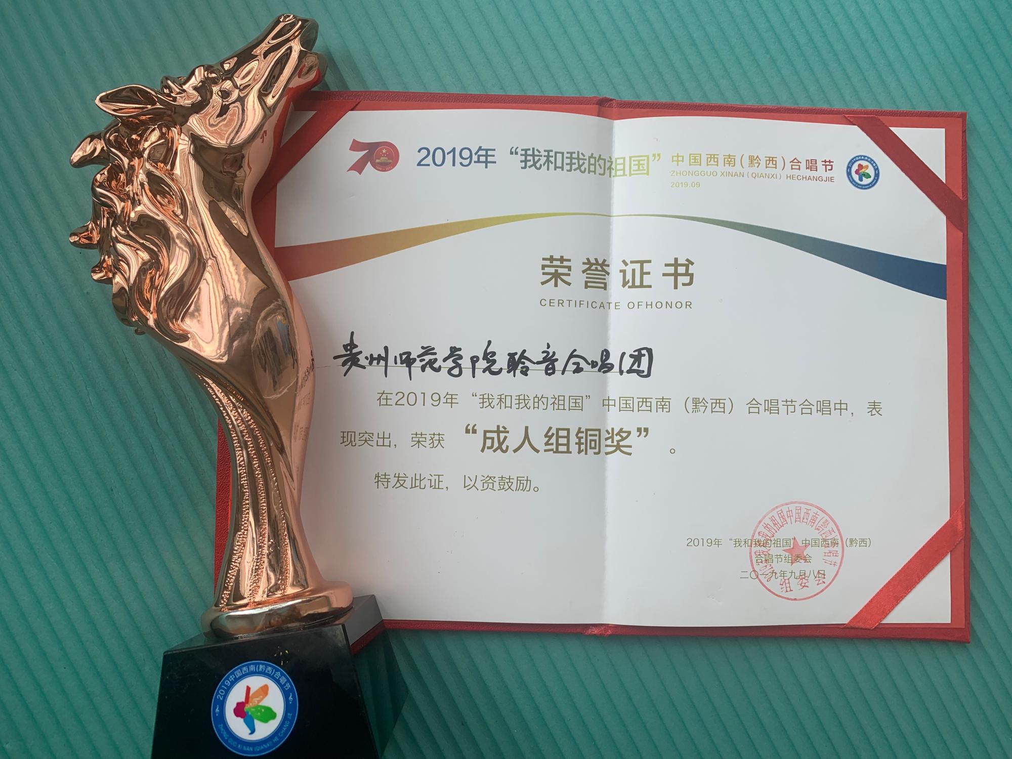 9月7日晚,“2019年‘我和我的祖国’中国西南合唱节”落下帷幕,2026年世界杯官网聆音合唱团参加了最后的决赛。在比赛中,聆音合唱团演唱了《夜歌》和《吉且古》两首民族风格合唱曲目。在演唱过程中,合唱团的四个声部平衡默契,和声唯美,音乐语言表达精准,给现场观众和评委留下深刻的印象,整个表演过程潇洒自如,表 现优异。经过激烈的角逐,公司聆音合唱团夺得成年组铜奖。