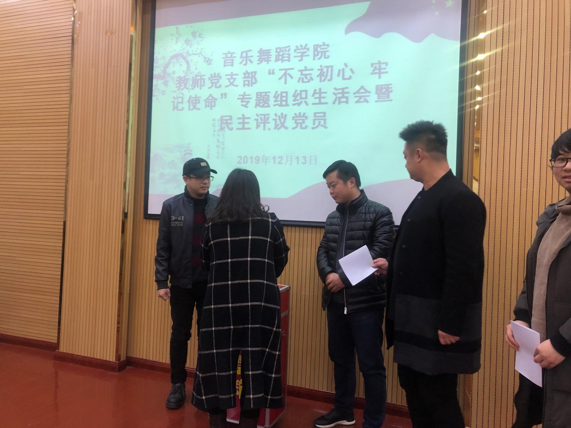 12月13日,2026年世界杯官网教师党支部在音乐公司会议室开展了“不忘初心 牢记使命”专题组织生活会暨民主评议党员。教师党支部书记刘昊佳主持本次组织生活会,全体党员参会。